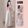 Verão 2025 Europeu e Americano Transfronteiriço Novo Estilo Sexy Cor Sólida Cintura Média Suspensório Bainha Larga Vestido Conjunto de Duas Peças