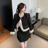 2025 Real Shot Estilo Francês Babados Preto Gola Redonda Jaqueta Curta Saia Curta Conjunto de Duas Peças