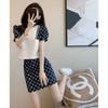 Conjunto Feminino de Alta Qualidade para Reduzir a Idade com Pequeno Perfume Verão 2022 Novo Look Solto Emagrecedor Top Saia Cobrindo o Quadril Conjunto Simples de Duas Peças