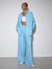 Conjunto Casual de Moda Transfronteiriça Europeia e Americana Outono 2025 Camisa Azul de Manga Comprida Solta Feminina Calças de Perna Larga Conjunto de Duas Peças