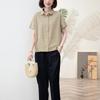 Conjunto Feminino de Algodão e Linho de 2 Peças Retrô Tamanho Grande Primavera e Verão 2025 Terno de Camisa de Algodão e Linho Calças Soltas
