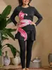 Vendas diretas de fábrica maiô conservador modelador de barriga feminino de duas peças de manga comprida calça comprida estampa floral cordão muçulmano senhoras