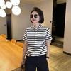 Plus Verão Novo Listrado Manga Curta Manga Média Moda Gola Quadrada Simples Casual Listrado Camisa Polo
