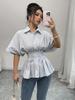 Camisa Feminina de Verão Listrada com Lapela na Cintura - Emagrecedora de Manga Curta com Bainha Babada