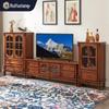 Armário de TV de Madeira Maciça Estilo Americano 2m Sala de Estar Mesa de TV Armário de Chão Retrô Estilo Europeu 2,4m Vila Apartamento Grande