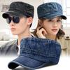 Chapéu masculino estilo coreano lavado distressed denim respirável boné militar ao ar livre guarda-sol boné plano mulheres casuais