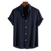 Camisa Masculina de Verão de Manga Curta com Lapela de Cor Sólida Transfronteiriça, Popular no Wish e no Aliexpress, Camisa Casual com Botões, Leve