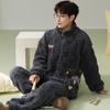 Novo pijama masculino de inverno lã coral três camadas acolchoado quente flanela forrado terno home wear pode ser usado fora