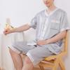 Pijamas de seda de manga curta verão homens casuais soltos shorts terno de duas peças para papai seda bicho-da-seda roupas para casa