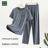 Pijama de seda imitação masculina verão manga curta fino estilo coreano calças masculinas para uso doméstico primavera gelo seda terno de duas peças