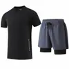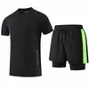 Conjunto de duas peças de secagem rápida para fitness masculino de manga curta