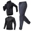 Conjunto de Roupa Fitness de Secagem Rápida Transfronteiriço para Homens no Outono e Inverno, Leggings Respiráveis de Alta Elasticidade, Roupa de Treino de Basquete ao Ar Livre