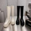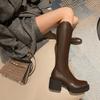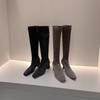 Outono e Inverno 2024 Novo Estilo Botas Slim Elásticas Até o Joelho Botas de Cano Alto com Sola Grossa e Salto Interno Botas de Cavaleiro Forradas com Lã
