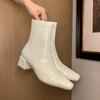 2024 Salto Grosso Versátil Botas Curtas Bico Quadrado Botas Slim Zíper Traseiro Botas Outono e Inverno Sapatos Femininos Botas Martin Resistentes ao Desgaste Antiderrapantes