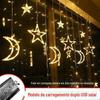 Luzes de Cortina de Estrela e Lua Recarregáveis Lanternas Bola de Desejo Cordões de Luzes Solares Luzes de Ambiente Externo Luzes de Cordão para Acampamento ao Ar Livre