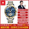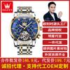 Fabricante de relógios Oulishi entrega de uma peça relógio mecânico automático multifuncional fase da lua relógio masculino oco relógio masculino