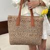 Bolsa Tote de Estilo Francês, Bolsa de Palha Tecida de Grande Capacidade, Bolsa de Compras Casual, Bolsa de Ombro, Estilo de Férias Europeu e Americano