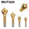 Dispositivo de chanfradura de furo oblíquo de 4 peças banhado a titânio transfronteiriço, ângulo de 90 graus, rebarbação de furo único, cabo redondo, broca de aço de alta velocidade, faca de chanfradura