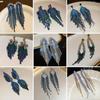 Brincos de borla de penas boêmios exóticos para mulheres, design com sentido étnico, brincos de turquesa, atacado
