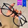 Armação de Óculos de Grau Estilo Coreano com Miopia Moda Retrô Quadrada Metal Mista Luz Anti-Azul 2023 Cor Clara Tr9214