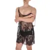 Vestido Slip Masculino Sexy Alça Camisola Ladyboy Transparente Perspectiva Sem Alças Pijama Roupão Roupa Erótica