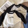 Camisa Base de Algodão de manga comprida com letras para meninos e meninas Primavera Crianças Round Neck T-shirt estampado Top para meninos e bebês Primavera e Outono Crianças