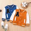 Roupa Infantil Unissex Transfronteiriça Azul Marinho e Amarelo Linha A Bordada Punho Canelado Bolso Gola Careca Jaqueta