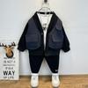 Roupas infantis meninos 2024 estilo ocidental masculino 'V-neck suéter bebê manga comprida falso de duas peças infantis primavera exterior vestir casual top