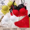 Lingerie Sexy Europeia e Americana Transfronteiriça, Seios Pequenos Parecem Maiores, Sutiã de Renda Push-Up, Conjunto de Lingerie Vermelho Tamanho Grande Ano do Animal