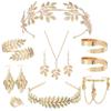 Venda quente nupcial folha faixa de cabelo barroco dourado headwear pulseira brincos braço anel jóias terno casamento