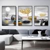 Pintura decorativa tripla moderna criativa de folha de ouro preta simples entrada de casa sala de estar pintura suspensa sem moldura núcleo