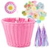 Cesta de vime das crianças, carrinho de bebê, cesta de bicicleta, acessórios da cesta de sino, adesivos, guidão, borla, imitação, Rattan, cesta tecida