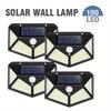 Lâmpada de parede 100LED ao ar livre lâmpada solar de quatro lados lâmpada de indução de corpo humano iluminação de parede de escada externa lâmpada de rua de carregamento