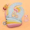 Babador de silicone infantil, bolso tridimensional para alimentos, à prova d'água e sem lavagem, bolso supermacio e escorregadio, desenho animado, em estoque