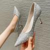 Salto Alto de Bico Fino Sapatos de Casamento Banquete Madrinha Festa 2025 Novo Estilo Stiletto Boca Rasa Elegante Ins Estilo da Moda