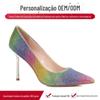 Sapatos de salto alto personalizados OEM estilo europeu e americano, bico fino, gradiente, colorido, estiloso, diamante, elegante, sapatos OEM