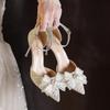 Novos sapatos de casamento salto alto strass laço moda moda diária casual all-match boca rasa banquete sapatos femininos sapatos de camada única
