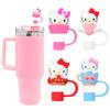 Novo desenho animado KT Cat Stanley Straw Cap Cute 10mm Dust Plug Tubo de sucção Tampa Copo Acessórios