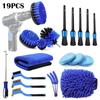 Escova de limpeza de beleza para carro transfronteiriça, 19 peças, detalhes de lavagem de carro, escova, furadeira elétrica, gancho para pneu, conjunto de escova para lavagem de carro