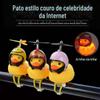 Pato Amarelinho com Capacete Montado no Carro, Espelho Retrovisor de Veículo Elétrico, Ornamento de Teto de Carro, Pato Turbo, Divertido