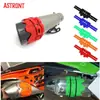 Acessórios modificados para motocicletas off-road, incluindo plugue de escapamento colorido e acessórios para silenciador de escapamento.