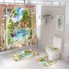 Cortina de Chuveiro Série Praia Oceano Impressão Digital 3D Conjunto de Quatro Peças Espessada Impermeável Espessa Cortina de Banheiro Poliéster Conjunto de Cortina de Chuveiro