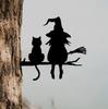 Silhueta de Metal Bruxa Fofa e Gato Jardim Coto de Árvore Arte de Decoração de Pátio Plug-in Coto de Árvore Gramado Pátio