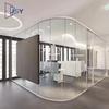 Divisórias de Vidro Curvo para Escritório Personalizáveis com Aço por Dentro e Alumínio por Fora, Divisórias Altas de Vidro Temperado de Camada Única, Salas Acústicas Transparentes