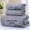 Conjunto de toalhas de banho listradas em fleece coral grosso, com secagem rápida e alta absorção, nos tamanhos 30x70 e 70x135 cm.