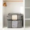 Caixa de Armazenamento Pied-de-Poule | Tecido Não Tecido | 50L/75L | Organizador de Guarda-Roupa para Roupas e Colchas