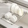 Rack de drenagem de pia de aço inoxidável Tigela doméstica e rack de pratos Rack de tigela e pauzinhos Rack de drenagem de frutas e vegetais Cozinha Cesta de drenagem telescópica