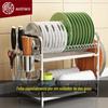 Aço inoxidável rack de cozinha para casa rack de bancada de prato ralo rack estilo japonês multi-funcional rack de prato de camada dupla com gaiola de pauzinhos