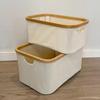 Em estoque, balde de armazenamento dobrável de bambu, cesto de roupa suja, cesto de armazenamento com tampa, estrutura em duas cores, armazenamento de brinquedos