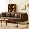 Sofá de couro vintage francês sala de estar óleo cera couro médio antigo caramelo fileira reta três pessoas tofu bloco sofá para pequeno apartamento